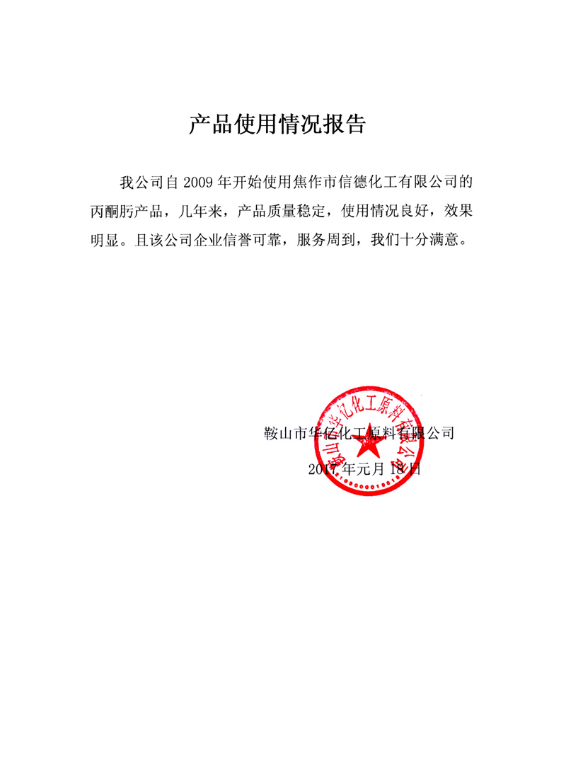 產(chǎn)品的使用情況證明